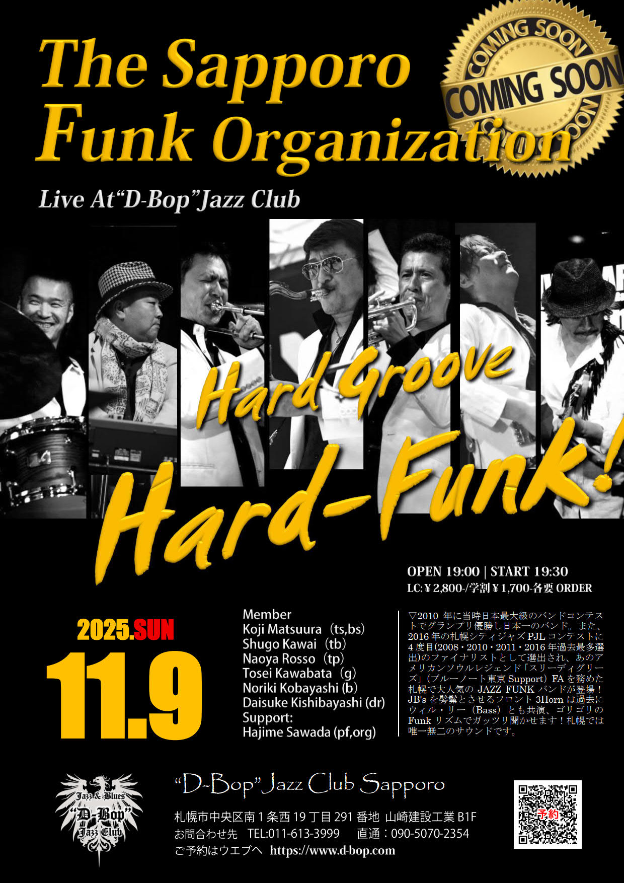 ■ 11/9(日) 19:30 The Sapporo Funk Organization @ D-Bop