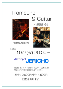 ■10/ 1(火) 20:00 TromboneとGuitar duo @ ジェリコ
