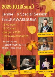 ■10/12(日) Jennie’s Special Session @ ハルナカフェ(函館)